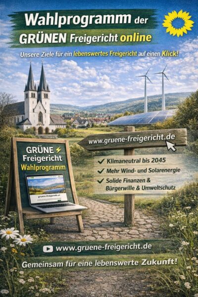 Weitere Informationen zu unseren Themen finden Sie unter www.gruene-freigericht.de oder auf Instagram @gruene_freigericht.